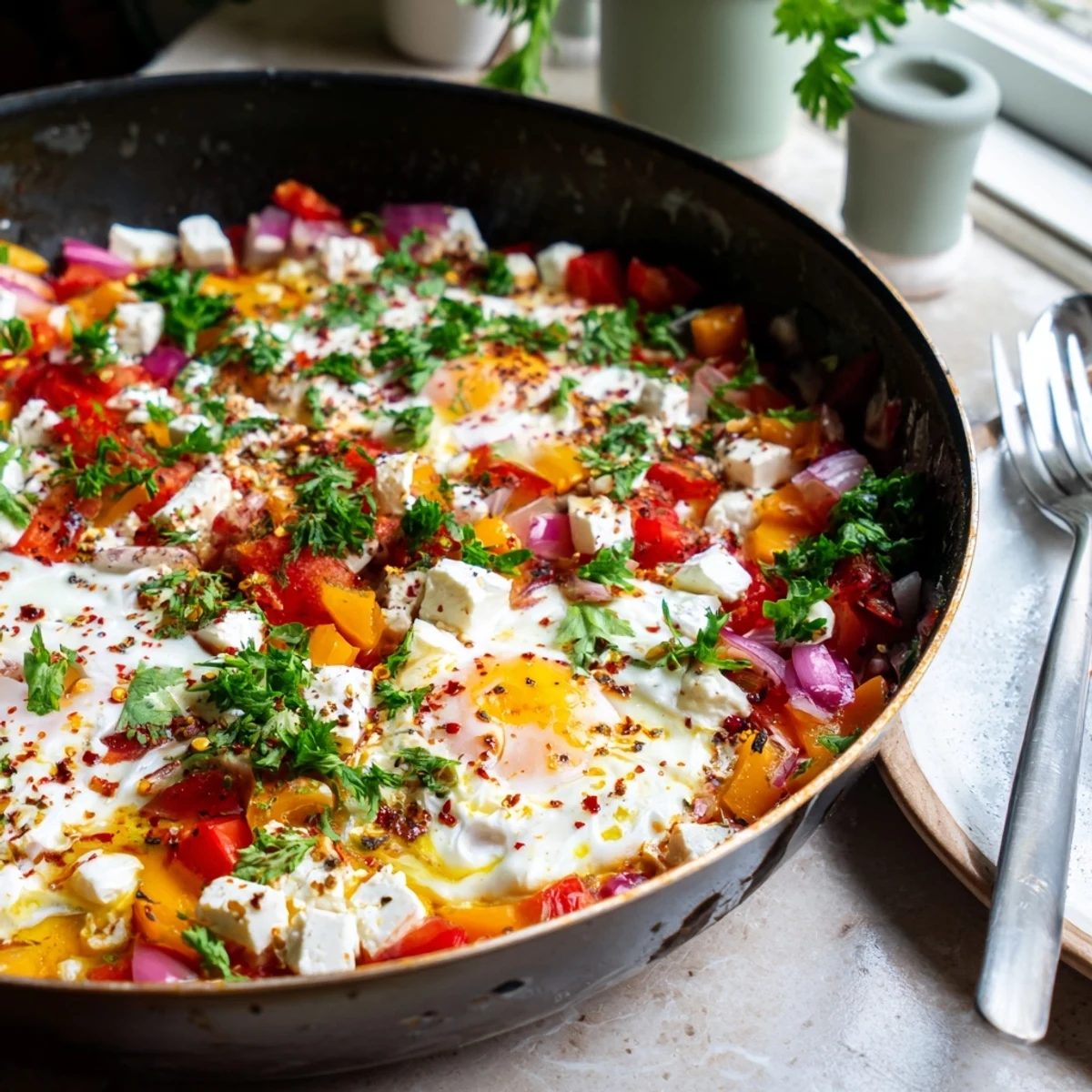 This Mediterranean-style breakfast combines creamy feta cheese with perfectly baked eggs in a single skillet. Fresh tomatoes, bell peppers, and red onions create a flavorful base, while aromatic oregano and parsley add herbal notes. The dish comes together in under 30 minutes, making it ideal for busy mornings or relaxed brunch. Each serving delivers 18g of protein with only 8g of carbohydrates, fitting perfectly into low-carb and vegetarian lifestyles. Serve with crusty bread to soak up the savory juices and runny yolks.