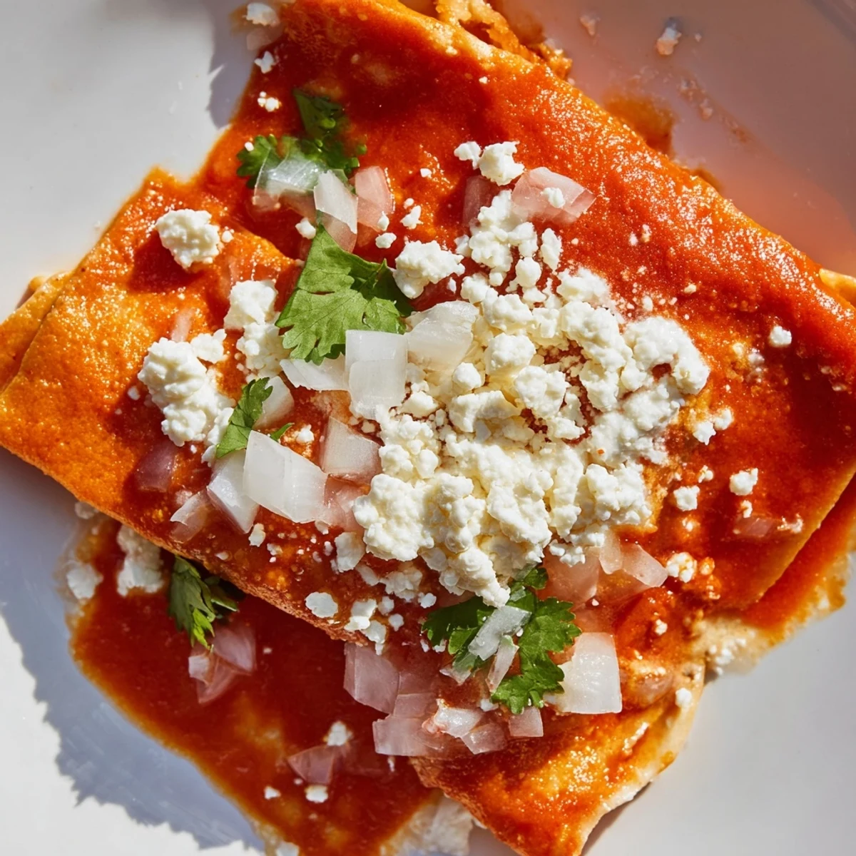 Traditional Mexican dish featuring corn tortillas lightly fried, then dipped in a homemade tomato sauce made from ripe tomatoes, garlic, onion, and spices. Each tortilla gets filled with queso fresco, folded or rolled, and served with extra sauce, cream, diced onion, and cilantro. Perfect for breakfast, lunch, or dinner, these versatile tortillas come together in just 35 minutes and can be customized with chicken, beef, or kept vegetarian.