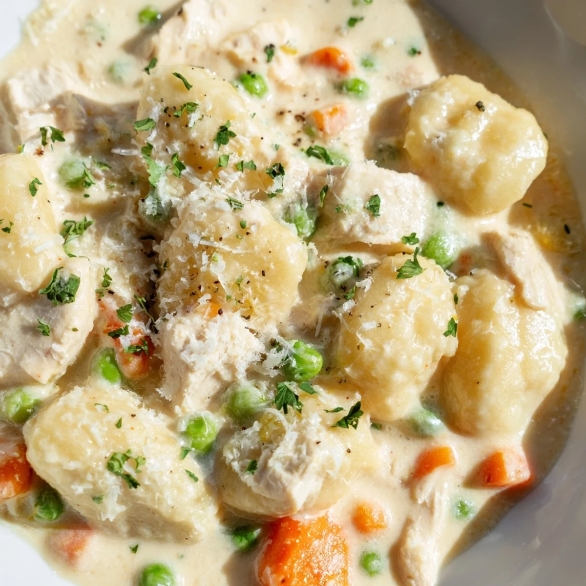 This one-pot comfort meal brings together pillowy potato gnocchi, tender shredded chicken, and classic pot pie vegetables in a rich, creamy sauce. The entire dish comes together in just 45 minutes with only 15 minutes of active prep time.