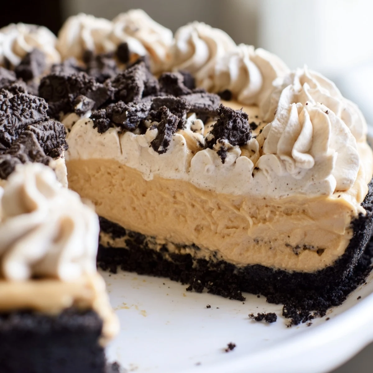 This indulgent dessert features a velvety smooth peanut butter and cream cheese filling nestled inside a crunchy chocolate Oreo cookie crust. The creamy filling is lightened with freshly whipped heavy cream, creating a mousse-like texture that melts in your mouth. After chilling to perfection, the pie is crowned with clouds of sweetened whipped cream and generous handfuls of crushed Oreos for that signature cookies-and-cream finish.